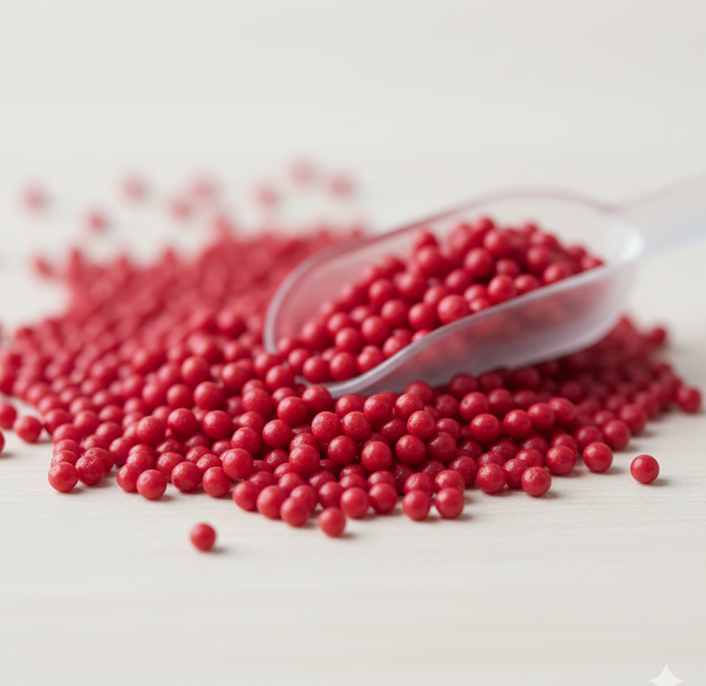 حبيبات الجوجوبا هي مقشر طبيعي لطيف يستخدم في مستحضرات التجميل وتصنع من زيت الجوجوبا المهدرج حجم (20-30 مش ) تشير الي حجم الحبيبات وهو مايجعله مناسب للاستخدام في منتجات الوجه و الجسم ويضيف اللون الاحمر مظهرا جذابا للمنتجانت بالاضافه الي الخدمات التجميليه التي تقدمها