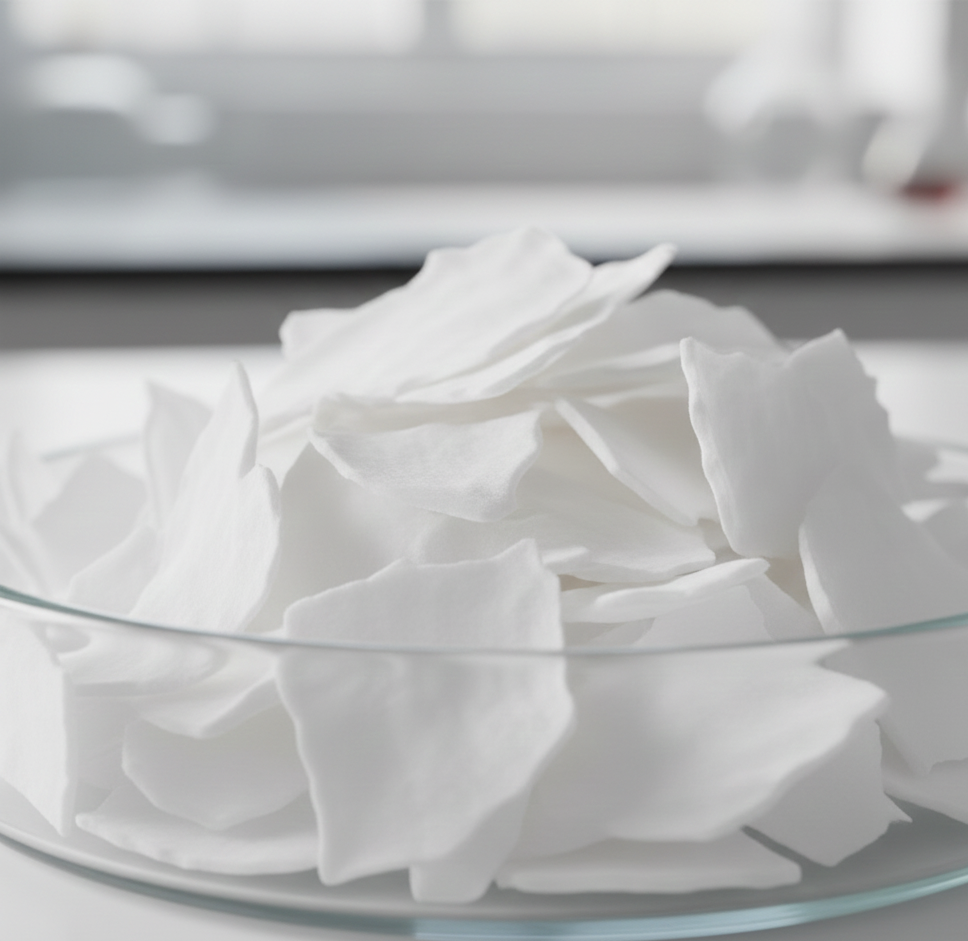 تُعد رقائق هيدروكسيد البوتاسيوم (KOH) مادة قلوية قوية ضرورية لإتمام عملية التصبن (Saponification)، وتستخدم بشكل خاص لإنتاج الصابون السائل والصابون المعجون الطري. تأتي هذه المادة على شكل رقائق صلبة صغيرة، وعند خلطها بالماء المقطر، فإنها تُنتج محلولًا قلويًا يتفاعل مع الزيوت والدهون لتحويلها إلى صابون. من الضروري جداً التعامل مع هيدروكسيد البوتاسيوم بحذر شديد وفي بيئة جيدة التهوية، واستخدام معدات السلامة الكاملة (مثل القفازات والنظارات الواقية)، نظراً لطبيعته الكاوية وخطورته العالية.