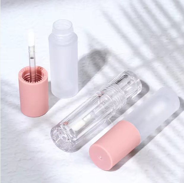 أنبوب أحمر شفاه سائل صغير 3 مل وردي مات  بالكامل أنبوب ملمع شفاه فارغ مع فرشاة سيليكون
