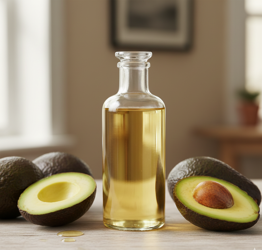 زيت الأفوكادو المكرر يُستخلص من لُب ثمرة الأفوكادو (Persea Gratissima) ويخضع لعملية تنقية شاملة لإزالة اللون والرائحة والشوائب، مما ينتج عنه زيت أفتح لوناً، عديم الرائحة تقريباً، وأكثر استقراراً للحرارة مقارنة بالزيت البكر. يتميز هذا الزيت بسائل يتراوح لونه بين الأصفر الفاتح والأخضر الباهت، وبملمس حريري متوسط الخفة. بفضل تصنيفه الكوميدوغينيك المعتدل (2)، يُعد زيت الأفوكادو المكرر خياراً ممتازاً وموثوقاً لتركيبات مستحضرات التجميل والعناية بالبشرة التي تتطلب أساساً زيتياً محايداً وقابلية عالية للاندماج.