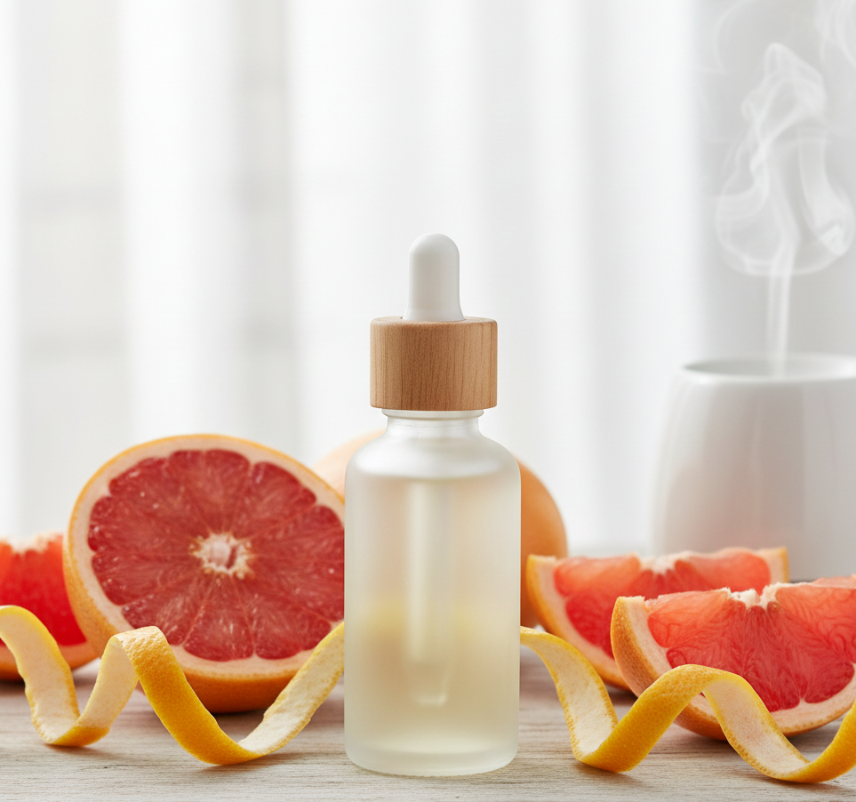 يُعرف زيت الجريب فروت العطري بفوائده العديدة، أهمها تحسين المزاج وتخفيف التوتر، وتنقية البشرة وتقليل الدهون الزائدة، ودعم عملية الأيض، وله خصائص مطهرة ومضادة للبكتيريا. يمكن استخدامه عن طريق الاستنشاق (بالتبخير) أو التدليك الموضعي للبشرة بعد تخفيفه بزيت ناق