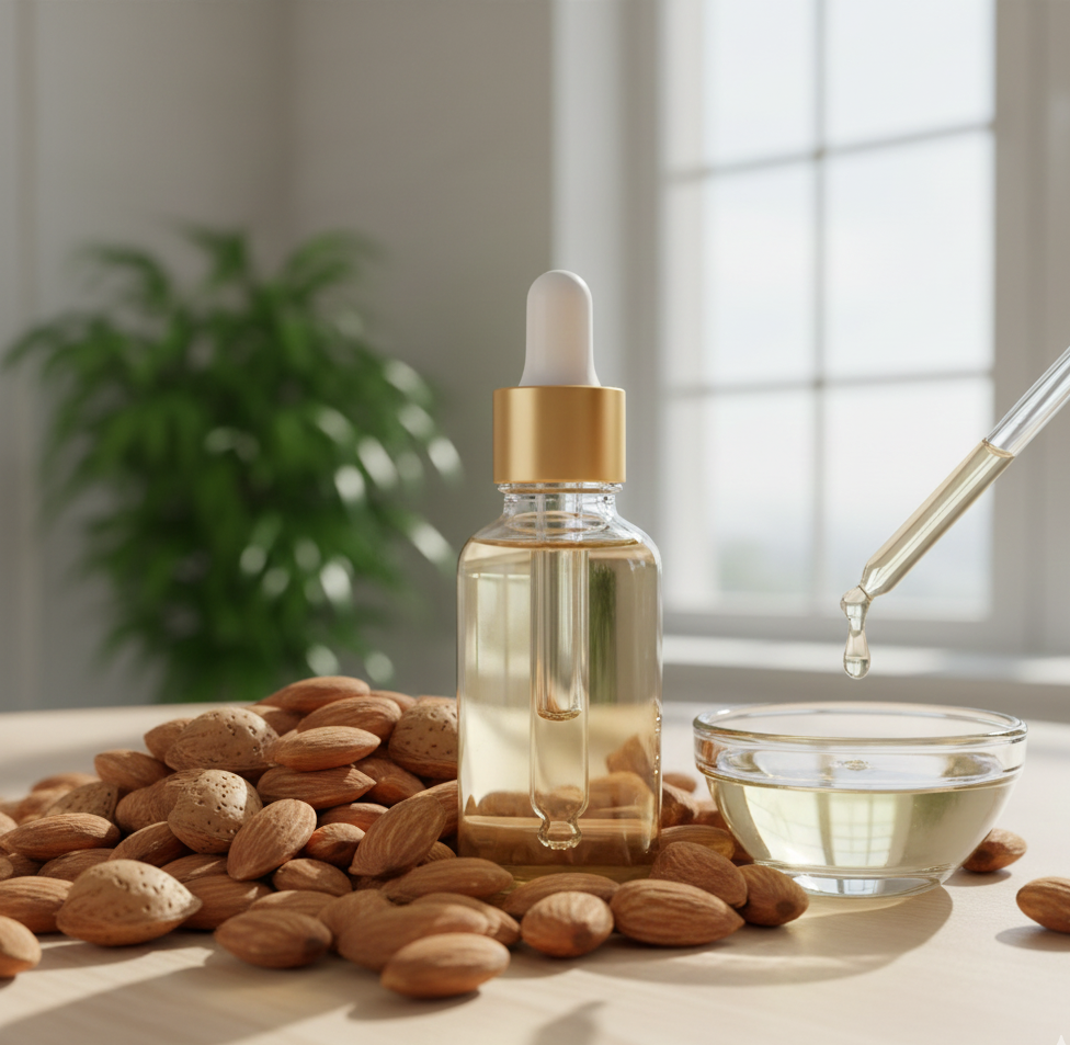 يُعتبر زيت اللوز الحلو مادة آمنة وفعالة للعناية بالوجه، حيث يوفر ترطيبًا عميقًا للبشرة الجافة وله خصائص مضادة للالتهابات تساعد في تهدئة التهيجات وتخفيف حالات مثل الأكزيما. بفضل غناه بفيتامين E ومضادات الأكسدة، يساهم الزيت في مقاومة علامات الشيخوخة، وتقليل ظهور التجاعيد والخطوط الدقيقة، كما يساعد في تحسين مظهر التصبغات وتفتيح الهالات السوداء، مما يعزز توحيد لون البشرة ويمنحها إشراقة شبابية. وعلى الرغم من أنه آمن للاستخدام العام، يجب على الأشخاص الذين يعانون من حساسية تجاه المكسرات توخي الحذر الشديد قبل استخدامه.