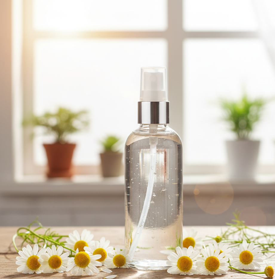 ماء البابونج هو هيدروسول طبيعي يُستخلص من زهور نبات البابونج، وهو معروف بخصائصه المهدئة والمضادة للالتهابات الفعالة للغاية. يتميز هذا الماء بكونه لطيفًا جداً على البشرة، مما يجعله الخيار الأمثل للبشرة الحساسة، المتهيجة، أو التي تعاني من حالات مثل الأكزيما والوردية. يعمل ماء البابونج كتونر طبيعي لتخفيف الاحمرار، تهدئة التهيجات الناتجة عن حروق الشمس، والعمل ككمادات للعيون المتعبة والمنتفخة، كما أنه آمن ومريح للاستخدام على بشرة الأطفال الرضع.