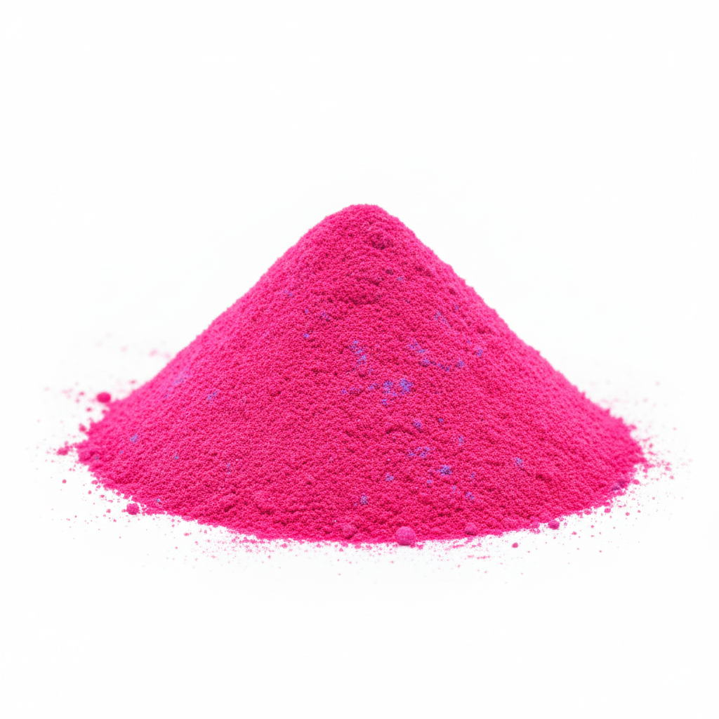 اللون: وردي فاقع، أحمر مزرق زاهي (Bright Pink / Bluish Red Shade).