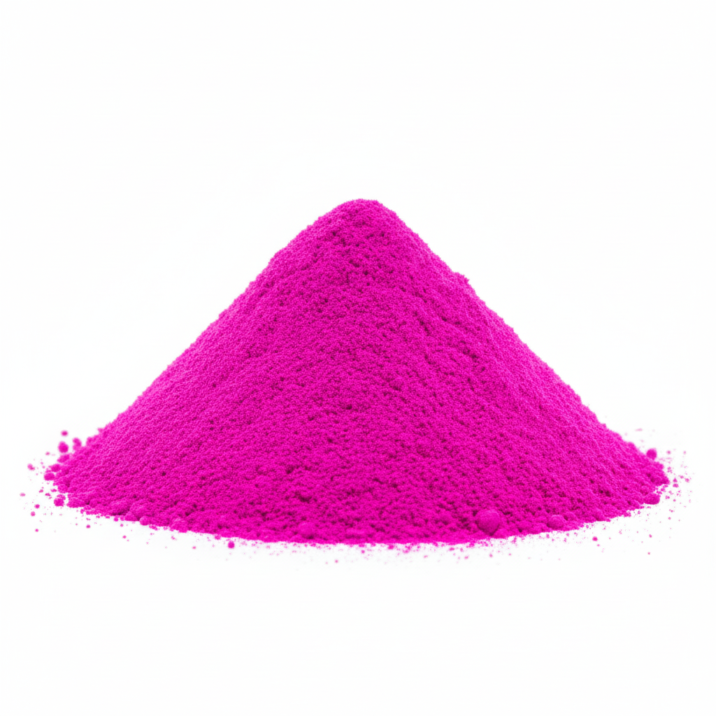 مسحوق صبغة الفوشيا هو ملون عضوي دقيق الحبيبات يتميز بلونه الوردي البنفسجي الساطع والحيوي (الماجنتا). تتمتع هذه الصبغة بقوة تلوين عالية جدًا، وتُستخدم لإضفاء درجات لونية جريئة ومميزة على المنتجات. الصبغة غير قابلة للذوبان في الماء وتعمل عن طريق التشتيت، مما يجعلها مثالية لتلوين مستحضرات التجميل (مثل أحمر الشفاه وظلال العيون) والمنتجات البلاستيكية والدهانات الفنية التي تتطلب ألوانًا نابضة بالحياة ومشرقة.
