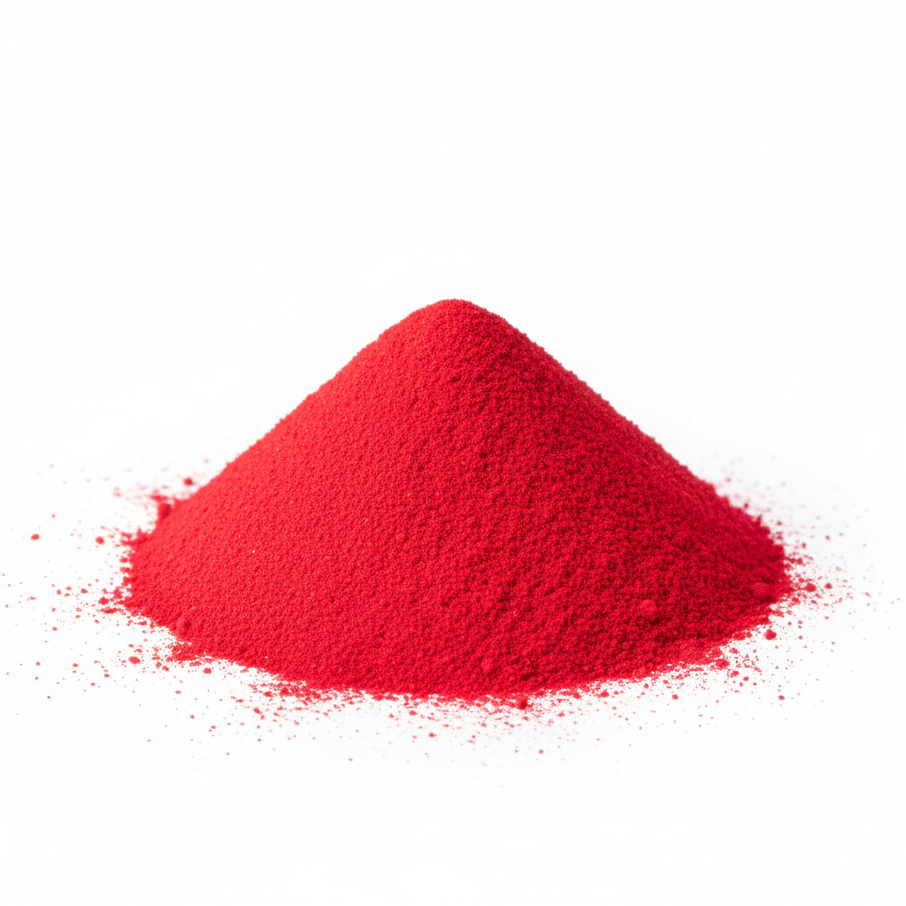 اللون الزاهي: يتميز بلون أحمر مشرق ونقي وجذاب للغاية، وهو أحد الألوان الحمراء الأساسية في صناعة مستحضرات التجميل.